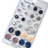 12 pairs set Crystal Fashion Earrings Set Women Jewelry Accessories Piercing Ball Stud Earring