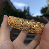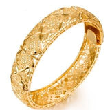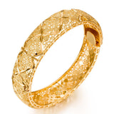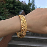 Add a touch of glamour to your look with this exquisite Gold Color Ethiopian Bangles Bracelet. This stunning jewelry is crafted from copper and features an ethnic design engraved in a delicate geometric pattern. The bracelet is perfect for adding a hint of luxury to any outfit, making it ideal for special occasions or everyday wear. It's also a great choice for gifting someone special, making any wearer feel pampered and glamorous. With its gold-color plating, this bracelet will stand out from the crowd! Show off your unique style with this eye-catching Ethiopian Jewelry Bangles & Bracelet, and get ready to turn heads wherever you go.