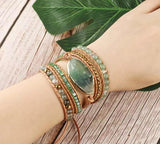 Green Fluorite Crystal Aventurine Bead Leather Wrap Bracelet Multilayer