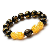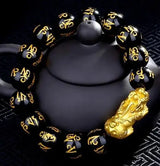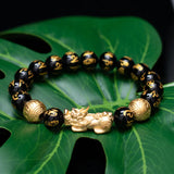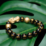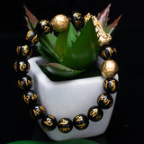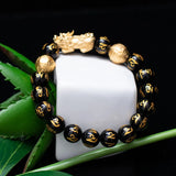Gold Pixiu Bracelet – Chinese Lucky Stone Beads with 6 Words Charm