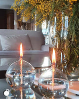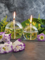 How it works: Simply fill the glass oil lamp with your choice of oil, light the wick, and enjoy the elegant candlelight it emits.