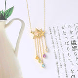 925 Sterling Silver Necklace Star Tassel Shooting Star Gemstone Pendant 14K Gold Plated Jewelry For Women