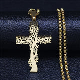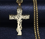 Cross Tree of Life Stainless Steel Chain Necklaces