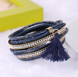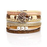 This Charm Pearls & Bangles Magnet Buckle Leather Bracelet is the perfect statement piece for any look. This luxurious leather bracelet features a unique magnet buckle closure, making it easy to put on and off. The design of this bracelet pays tribute to nature with its life of trees, bohemian accents, and colorful charm pearls & bangles. It is crafted with high-quality zinc alloy, cotton material, and tension setting to ensure long-lasting durability. With its unique style and sleek design, this bracelet will be an eye-catching accessory for any occasion! Whether you pair it with a casual outfit or dress up for the evening, this bracelet will make you stand out from the crowd. Get your Charm Pearls & Bangles Magnet Buckle Leather Bracelet today and add a touch of class to any look!