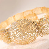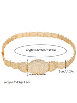 Step into elegance and tradition with the Moroccan Bride Adjustable Alloy Belt. This stunning belt boasts a geometric pattern that captures the essence of Moroccan artistry, creating a piece that seamlessly blends heritage with a touch of modern flair. Its alloy metal composition gives it a luxurious shine, making it the perfect accessory to elevate any outfit. Designed for women who appreciate bold, statement pieces, this belt is not only adjustable for a perfect fit but also crafted without any high-concern chemicals, ensuring a comfortable and worry-free wear.