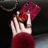 Crystal holder Stand+Fur Ball+Strap Phone case For iPhone 11 PRO MAX 6 6s 8 7 Plus XSMAX XR 5S SE12 Bling Glitter TPU Coque