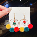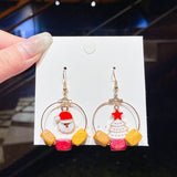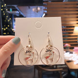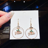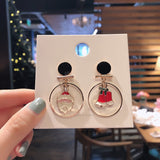 Rinhoo Christmas Circle Round Heart Deer Elk Pendant Earrings Piercing Ear Hook Earring Jewelry for Women