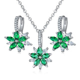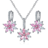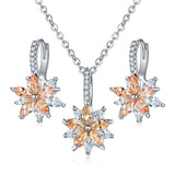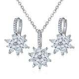 Flowers Bridal Jewelry Sets Necklace Earrings Silver Color Women Dangles Earrings