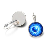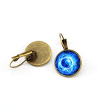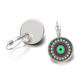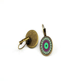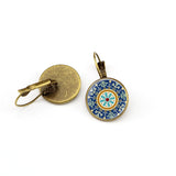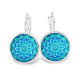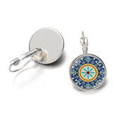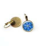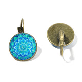 Blue Mandala Print Art Earring Henna Yoga Spiritual Meditation Bronze Plated Earrings Vintage Flowers Elegant