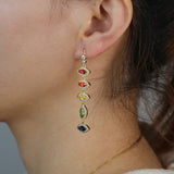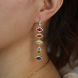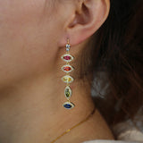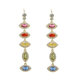 Gold Filled Fashion Female Jewelry Rainbow Colorful CZ Paved evil eye charm long dangle drop Earring
