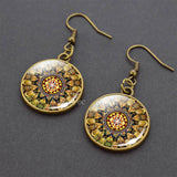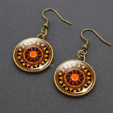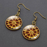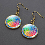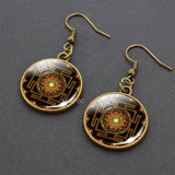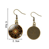 Sacred Geometry Dangle Hook Earrings Copper Drop Earrings, Women Fashion Spiritual Meditation Jewelry