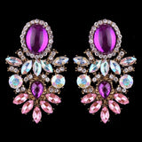 Wedding Bridal Statement Crystal Earrings, Purple Rhinestone Drop Dangle Earrings For Women
