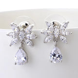 Exclusive Flower & Water Drop Pendant Cubic Zirconia Jewelry Set