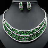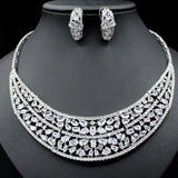 Luxury Rhodium Silver Cubic Zirconia Necklace Earring Set