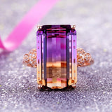 Rose gold color gemstones Finger Rings for women citrine amethyst crystal zircon diamonds luxury cocktail party