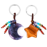 How it works: The Natural Stone 7 Chakra Keychain Healing Moon Star balances your chakras. The stones are said to have healing properties, and by carrying this keychain with you, you can keep your chakras in balance.