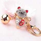 Fashion Women Lovely Happy Cat Bells Keychains Rhinestones Bag Keyring Handbag Charms Animal Key Holders