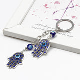 Lucky Eye Charms Keychain Hamsa Hand Pendent Tassel Key Chain Alloy Car Key Chain