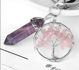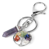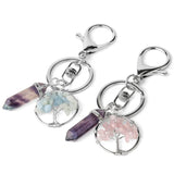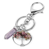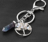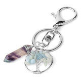 Natural Stone Fluorite Tree of Life Pendants Keychain Lobster Clasp Key Holder Car Backpack Accessories
