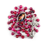 Catholic Rosary Small Size Round Blue Glass Beads Virgin Mary Jesus Necklace Women