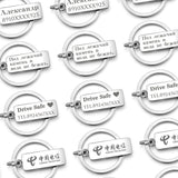 The Custom Engraved Keychain is made of stainless steel and is compatible with all keychain styles. It is also a great gift for men, women, couples, and best friends. The keychain is silver in color and comes with an opp bag for packaging.