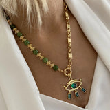 Add a bold and artistic touch to your wardrobe with this Bohemian Charm Pendant - Asymmetrical Bead Necklace. Its unique asymmetrical design and the blend of crystals with copper make it a perfect statement piece for women who embrace fashion with a twist of punk energy.