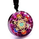 Natural Garnet 7 Chakra Healing Pendant - Metatron Cube Amulet