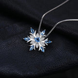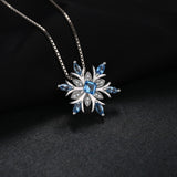 Snowflake Natural Swiss Blue Topaz Pendant Necklace 925 Sterling Silver Gemstones Choker Statement Necklace For Women