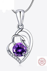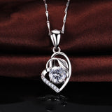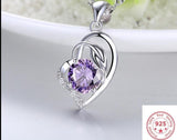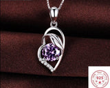 Austrian Heart Pendant Necklace For Women, Silver Color S925 Jewelry Amethyst Sapphire Pendants Gemstone Necklace