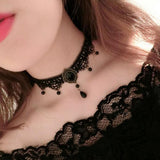 Choker Black Lace Crystal Pendant Collar Necklace