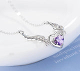 Trendy S925 Silver Jewelry Heart-shaped Amethyst Gemstones Pendants Necklace for Women