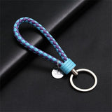 This PU Leather Braided Rope Keychain is perfect for you! It's made of zinc alloy and leather and silver in color. It's a great gift for couples and can also be used as a car keyring.