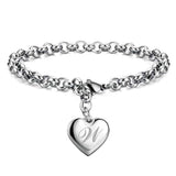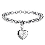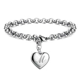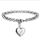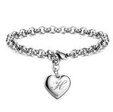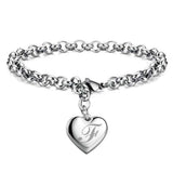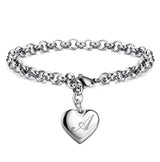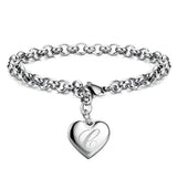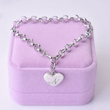 925 Sterling Silver A-Z Letter Heart Charm Bracelets