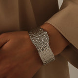 Make it yours. This wrinkle-textured cuff blends minimalist chic with a subtle punk edge—crafted in durable stainless steel and personalized with your initial or Arabic lettering. The adjustable, slim profile sits comfortably on the wrist, adding shimmer without the fuss. Choose Silver, Gold, or Rose Gold to match your mood, then gift it in the included luxe box.