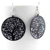 A: Life Tree Earrings are crafted with zinc alloy metal for long-lasting wear.