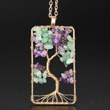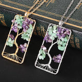 Amethysts Gravel Tree Of Life Pendant Necklaces