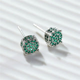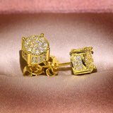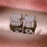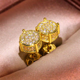 Luxury Full Crystal Round Earrings White Gold Yellow Gold Color White Zircon Stone Wedding Stud Earrings