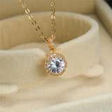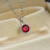 Dainty Female Red Green Pendant Necklace rose gold color Chain Oval Crystal Stone Necklaces For Women