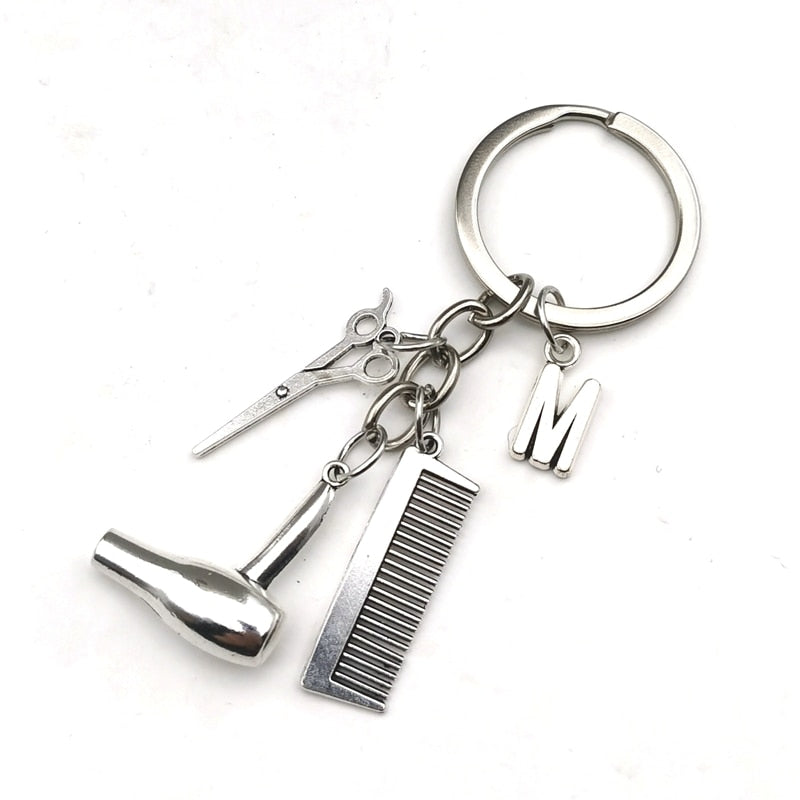 Hair dryer scissors comb Decorative Keychains Hairdressers Gift Key Rings Hair Dryer Alphabet Keyring