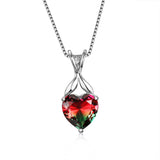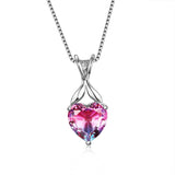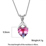 Charming Pink Purple Crystal Heart Pendant Rainbow Gradient Zircon Necklaces For Women