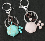 The Hexagram Natural Stone Keychains come in various colors and styles to suit your taste. Each keychain is made with a different natural stone, including amethyst, rose quartz, and tiger eye. The stones are polished to a shine and set in a silver-plated metal frame.