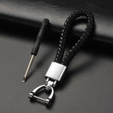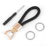 High-Grade Luxury Car Key Chain 360 Degree Rotating Horseshoe Buckle Hand Woven Leather Men Women Key Rings Holder