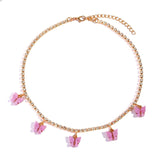 Trendy cute Iced Out Butterfly Choker Necklaces For Women Gold Silver Color Tennis Chain Animals Pendant