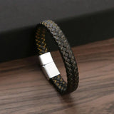 Elevate your style with this exquisite genuine leather chain bracelet featuring a sleek magnetic stainless steel clasp plated in gold. Designed for the modern man, this bracelet combines classic elegance with contemporary flair, making it the perfect accessory for any occasion. Whether dressing up for a special event or adding a touch of sophistication to your everyday look, this bracelet is a must-have addition to your jewelry collection. Don't miss out on this exclusive piece – order now and enhance your style effortlessly.