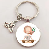 Modern 'I Love Yoga' Glass Keychain - Buddha Style