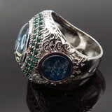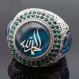 Elevate your style with the Men's Jewelry Muslim Arabic God Message Finger Ring. This luxury piece features a big round green and blue stone, making it a standout accessory for any occasion.