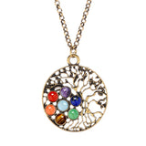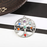 Balance your vibe and elevate your look. This boho-chic slide pendant pairs a round natural stone disc with 7 chakra beads and a delicately detailed Tree of Life charm. Lightweight, eye-catching, and easy to style from festival fits to everyday tees—just slide it on your favorite chain or cord and glow.