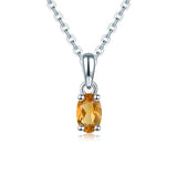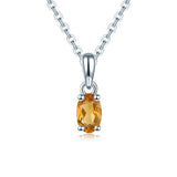 925 Silver Necklace Pendant Oval 6x4mm Real Yellow Gemstone Solid 925 Sterling Silver Chain for Women