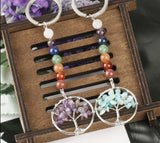 Natural Stone 7 Chakra Keychain Reiki Tree of Life Pendant