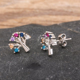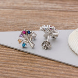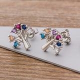 Rainbow Earrings Female Copper CZ Gold Tree of Life Stud Earrings for Women